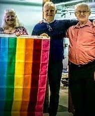 A highlight was the presentation of a rainbow flag to CantaNYC by Charley Beal, a friend of the flag’s original designer, in honor of the choral premiere of Rainbow Flag by Singing Grandma Sherri.